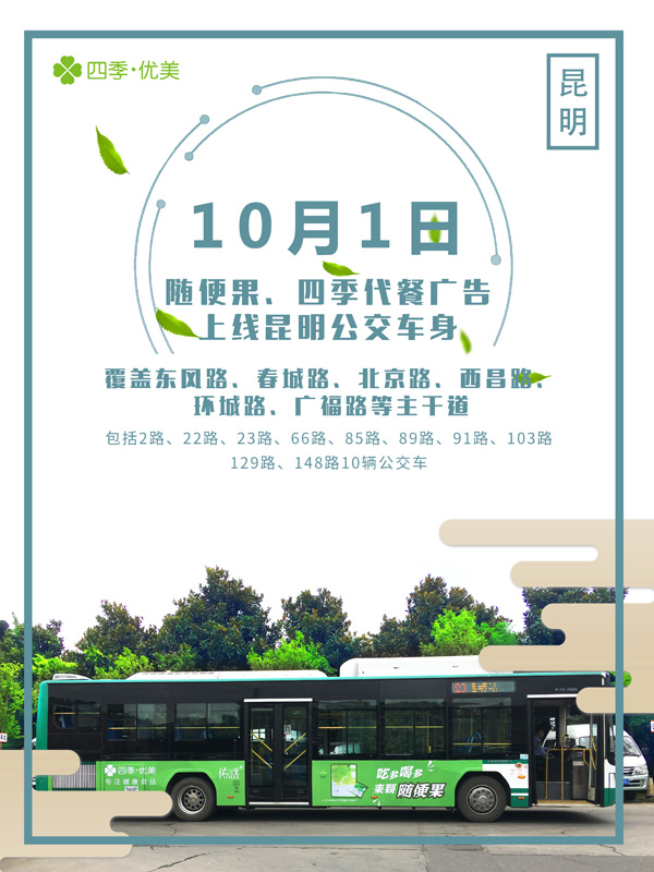 秋日的昆明已然美得不可方物,四季優(yōu)美公交車體廣告的進(jìn)駐,更讓這一抹秋色多了一些靈動(dòng),平添幾許綠意。